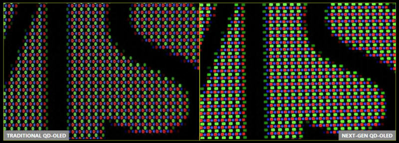 New QD-OLED series gaming monitor features the latest generation QD-OLED panels. The sub-pixel arrangement improves your viewing experience, providing sharper images, finer details, and clearer text.