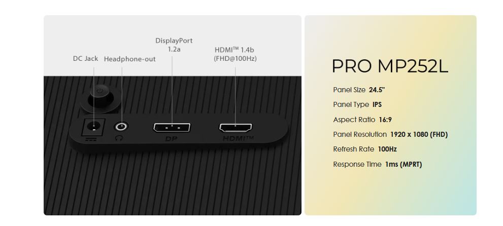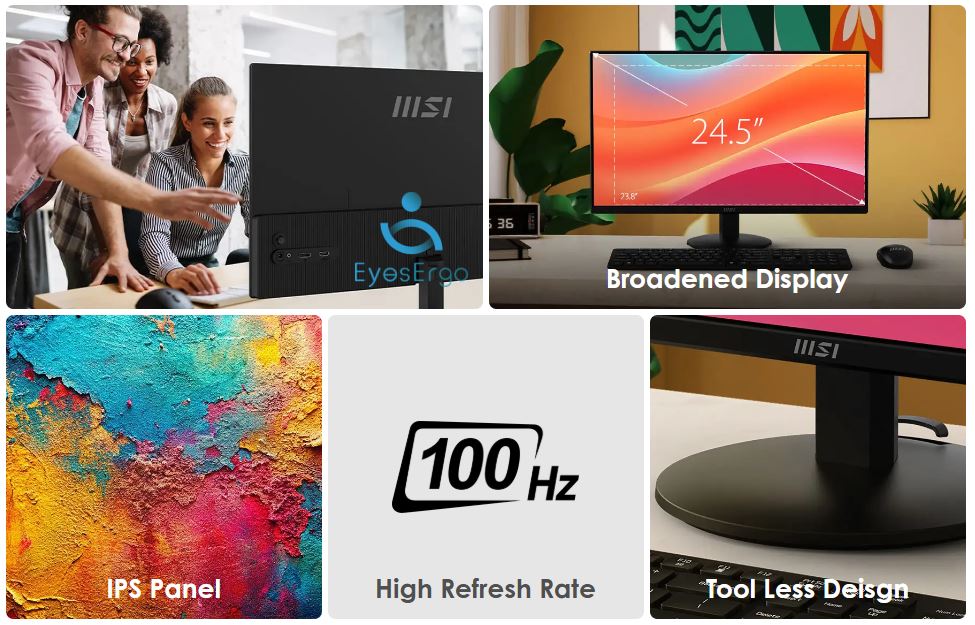 MSI Pro MP252L 24.5″ Inch 100Hz 1MS FHD Ultra Slim Frameless Monitor (3 Years Warranty)